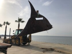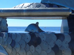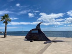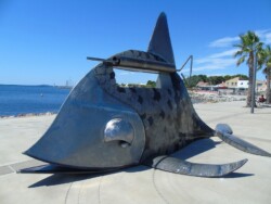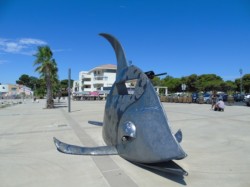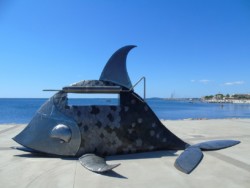 Mi-baleine, mi-dauphin, le « Baphin » prend un bain de soleil sur la « promenade Thomas Bessière », son port d’attache. Et c’est là que les curieux ont pu découvrir la créature… On raconte même que les plus audacieux ont osé se faire prendre en photo aux côtés de cet animal tout droit sorti de l’imaginaire de l’artiste…