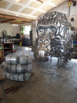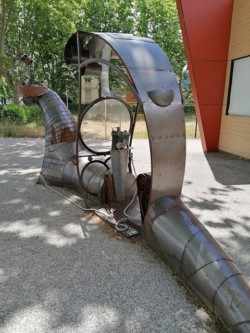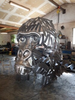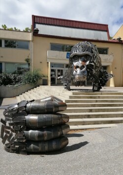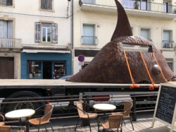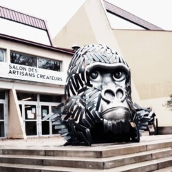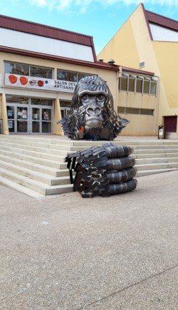 ● D’apparence plus paisible, un spectaculaire gastéropode se dandine sur le parvis de « Luteva ». Visiblement, il ne fait pas partie des habitudes alimentaires du grand gorille, sans quoi il aurait été englouti depuis belle lurette ! Tout comme King Kong, le grand escargot a été réalisé en 2019, dans le cadre du Salon des artisans créateurs de Lodève.