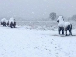 2 BISONS ET 1 TARPAN SE PRÉLASSENT À LA GARDE, PRÈS DE TOULON
